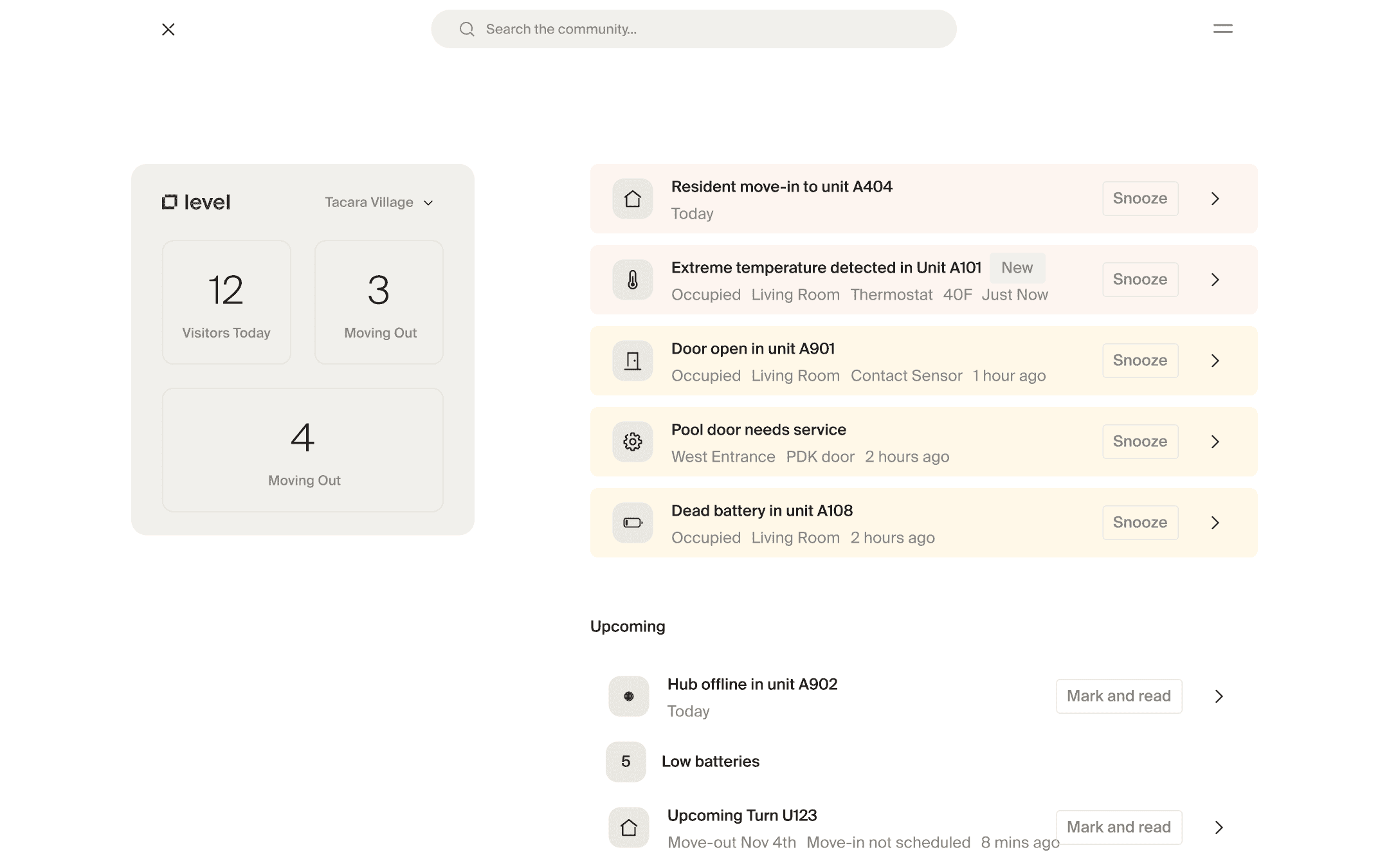 Full user flow exploration for managing visitor access and related unit interactions